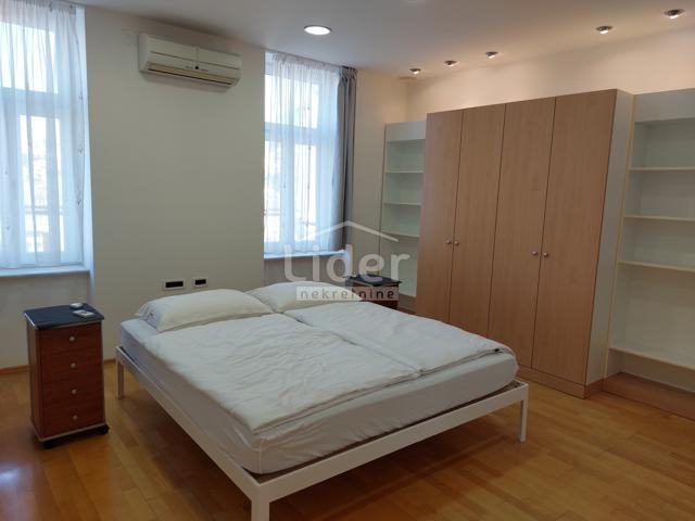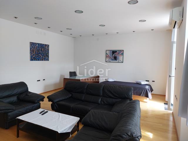 Iznajmljuje se prostrani dvosobni stan s dnevnim boravkom na Belvederu, površine 150 m². Stan se sastoji od dvije spavaće sobe, velikog dnevnog boravka, kuhinje i blagovaonice te kupaonice. Posebnu vrijednost stanu daju tri balkona s prekrasnim pogledom na grad i djelomičan pogled na more.