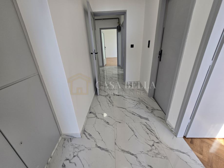 Stan se sastoji od tri zasebne sobe, odvojene kuhinje, hodnika, lođe te kupaonice s posebnim WC-om. Prostor je tijekom cijelog dana ispunjen prirodnim svjetlom. U stanu je ugrađena nova PVC stolarija, postavljene su nove keramičke pločice, parket je izbrušen i lakiran visokim sjajem, a unutarnja vrata restaurirana i obnovljena. Preporuka agenta!