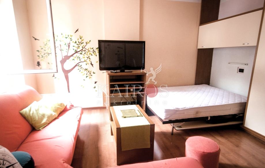 BELVEDER, stan za najam, jednosoban stan s balkonom, stan površine 43 m2, na 2. katu. Potpuno opremljena kuhinja (posebna prostorija) s indukcijskom pločom, pećnicom, perilicom posuđa i velikim hladnjakom. Velika kupaonica s hidromasažnom kadom i perilicom rublja. Grijanje/hlađenje putem klima uređaja (inverter).