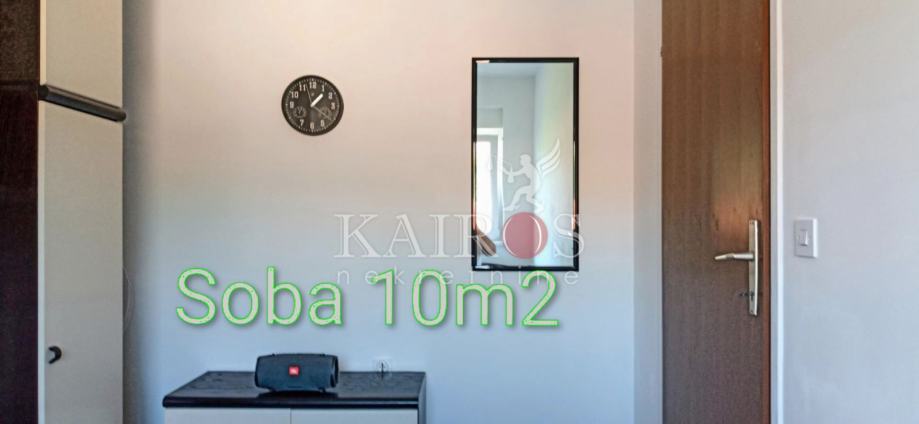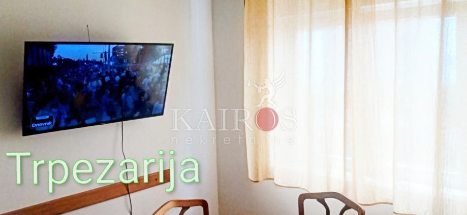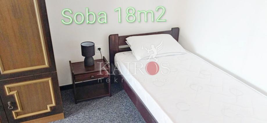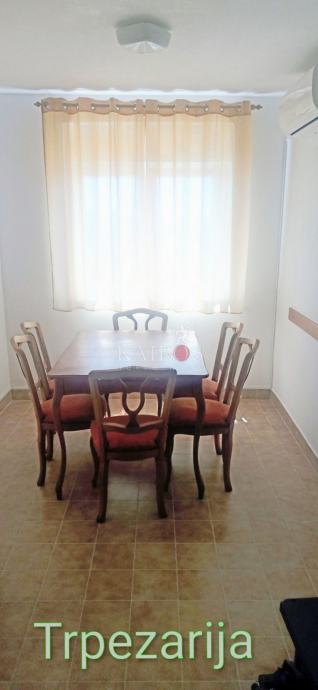 BELVEDER, iznajmljujemo stan koji se nalazi na 2. katu stambene zgrade. Stan je u renoviran i namješten. Ima ukupno 3 sobe: 18 m2, 12 m2 i 10 m2. U manjim sobama je po jedan krevet, u većoj stanu i 2 kreveta. Ima dva odvojena sanitarna čvora, kupaonicu i wc. Kućanski aparati - sve što je potrebno za svakodnevni život (perilica rublja i suđa, hladnjak, štednjak, usisavač, mikrovalna...). Nova vanjska PVC stolarija sa argonskim staklima. Grijanje el. konvekcijske grijalice. Hlađenje stropni ventilatori i klima. Sušilo za veš na balkonu i u zajedničkoj natkrivenoj lođi.