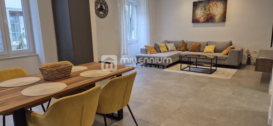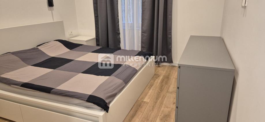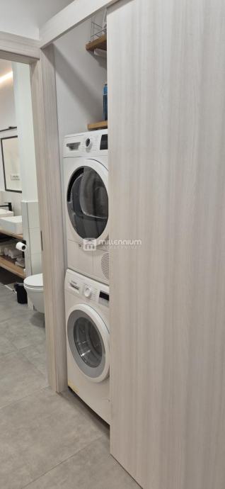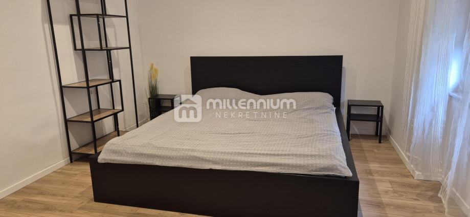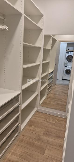 Stan se sastoji od ulaznog predsoblja, dvije prostrane spavaće sobe, kupaonice, zasebnog toaleta, kuhinje i blagovaonice koje su smještene u povezanom prostoru s dnevnim boravkom te ostave u kojoj je utility. Takav raspored daje prostoru posebnu dinamiku, osjećaj prozračnosti i ugodnu atmosferu za svakodnevni život i druženja.