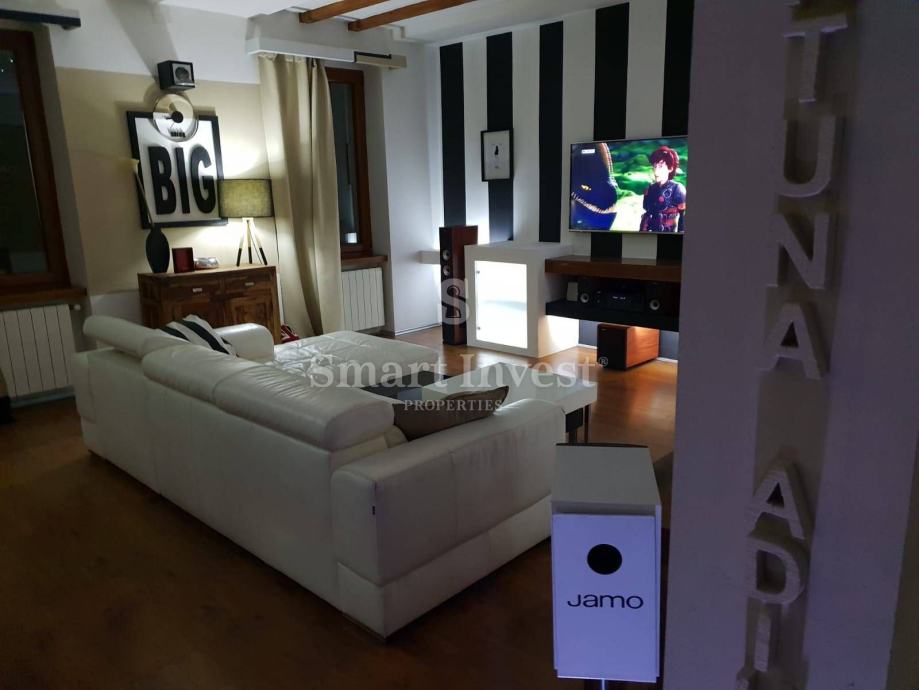 Stan je jako lijepo i luksuzno uređen, kvalitetno opremljen (protuprovalna vrata, video nadzor, pvc stolarija) i namješten te se kao takav i prodaje.