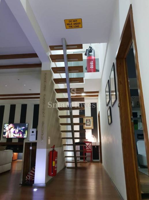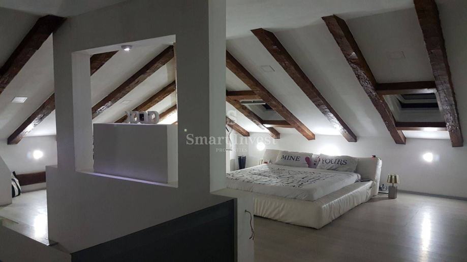 Dvoetažni stan površine 120 m2, u naravi 160 m2, smješten na 1. katu manje stambene zgrade s posebnim ulazom. Stan se sastoji od dnevnog boravka i kuhinje s blagovaonicom, hodnika, stepeništa, 2 spavaće sobe i kupaonice.