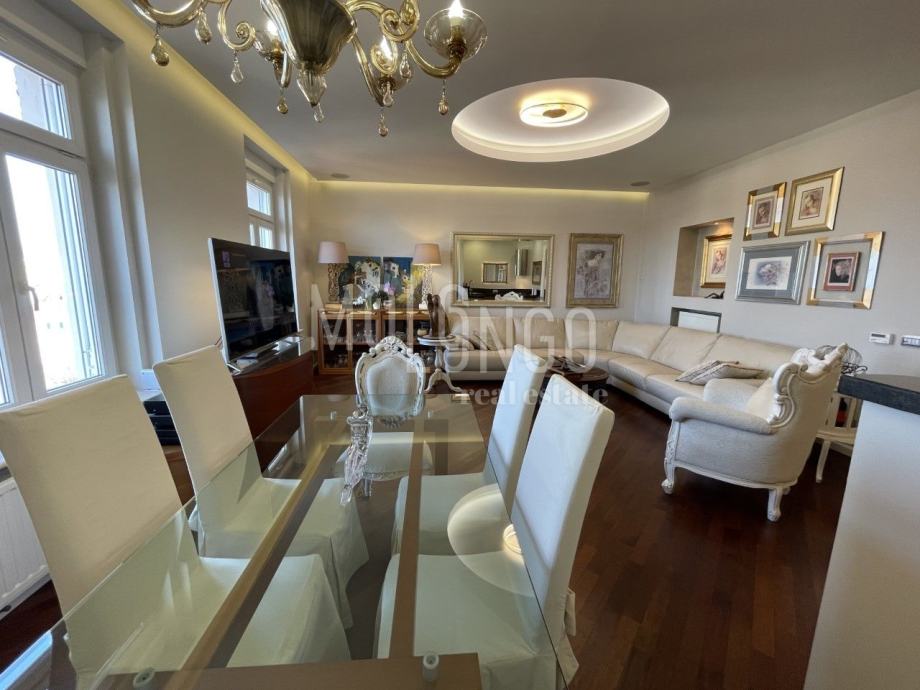 Stan se sastoji od 3 spavaće sobe, open space dnevnog boravka i kuhinje, 2 kupaone, te 2 balkona. Nekretnina je kompletno novoadaptirana visokokvalitetnim materijalima, a zadnja adaptacija je 2020. godine, opremljena dizajnerskim namještajem i opremom: