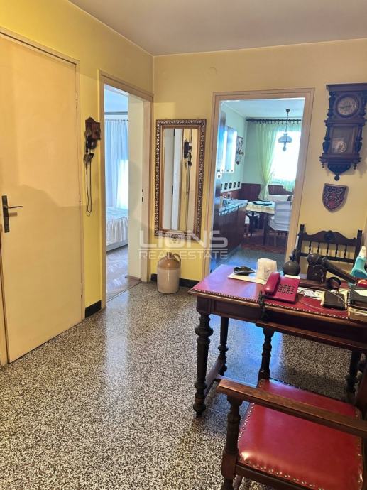 Na prodaju je prostran i izuzetno svijetao stan površine 99 m² smješten u samom centru grada, u kvalitetnoj stambenoj zgradi s liftom. Stan se nalazi na trećem katu, dok je s ulaza s ulice pozicioniran na prvom katu, što osigurava jednostavan pristup i dodatnu praktičnost. Zgrada ima ukupno 12 katova, a nedavno obnovljena fasada i energetski razred A jamče bolju energetsku učinkovitost i niže troškove stanovanja.