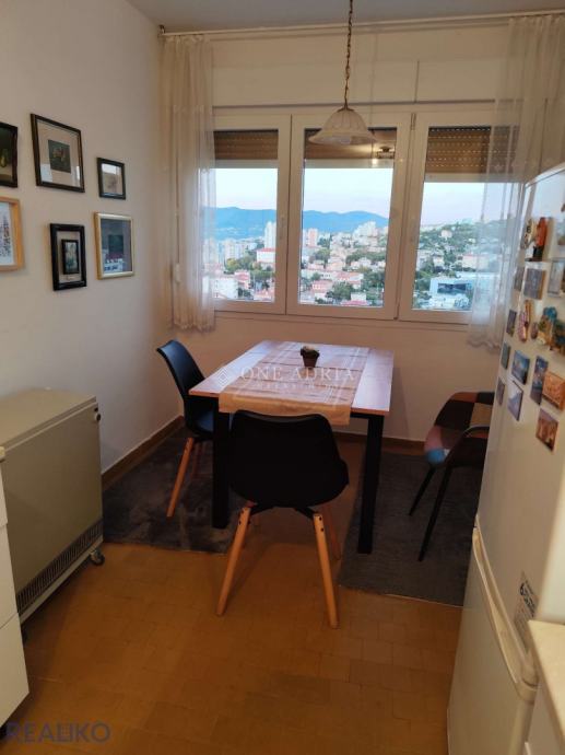 Prodaje se sunčan i svijetao dvosobni stan (1 soba + DB) na top lokaciji i pješačkoj udaljenosti do najužeg centra grada s očaravajućim i neometanim pogledom na more, centar grada i Opatijsku rivijeru.Smješten je u odlično građenoj i održavanoj zgradi iz 1973. koja je završila s energetskom obnovom 2024. godine. Zgrada posjeduje 2 lifta od kojih je jedan novi. Stan je jugo-zapadne orijentacije i sastoji se od: prostranog ulaznog hodnika u kojem se nalazi ugradbeni ormar koji služi kao smočnica, te još jedan garderobni ormar, kuhinje i blagovaonice (nešto više od 13m2 koja se po potrebi može preinačiti u spavaću sobu), dnevnog boravka južne orijentacije s izlazom na veliku lođu, spavaće sobe južne orijentacije i kupaonice. Stanu pripada i praktična drvarnica u suterenu zgrade.