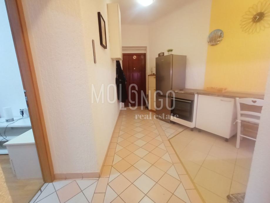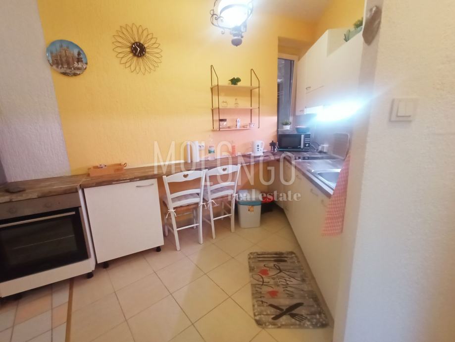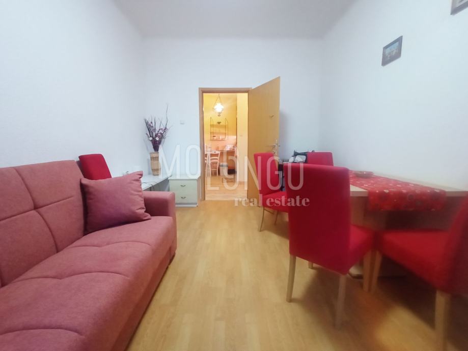 Odličan stan u suterenu koji se sastoji od dnevnog boravka, kupaone, hodnika, dvije sobe i kuhinje. Iz stana se izlazi na terasu, a također postoji dvorište na koje se gleda i koje se koristi za sušenje robe. Stan je vrlo uredan, te je kompletno obnovljena pvc stolarija. Na zgradi je novi krov, a u 1. mjesecu 2025. godine počinje obnova fasade.