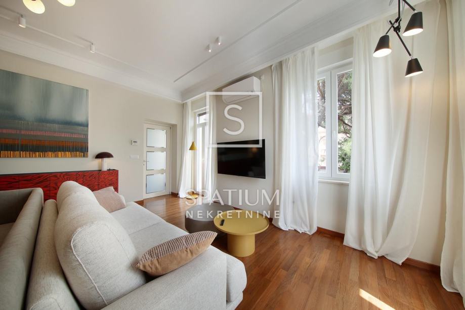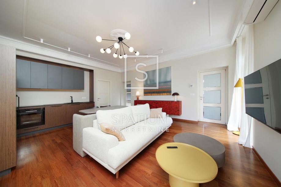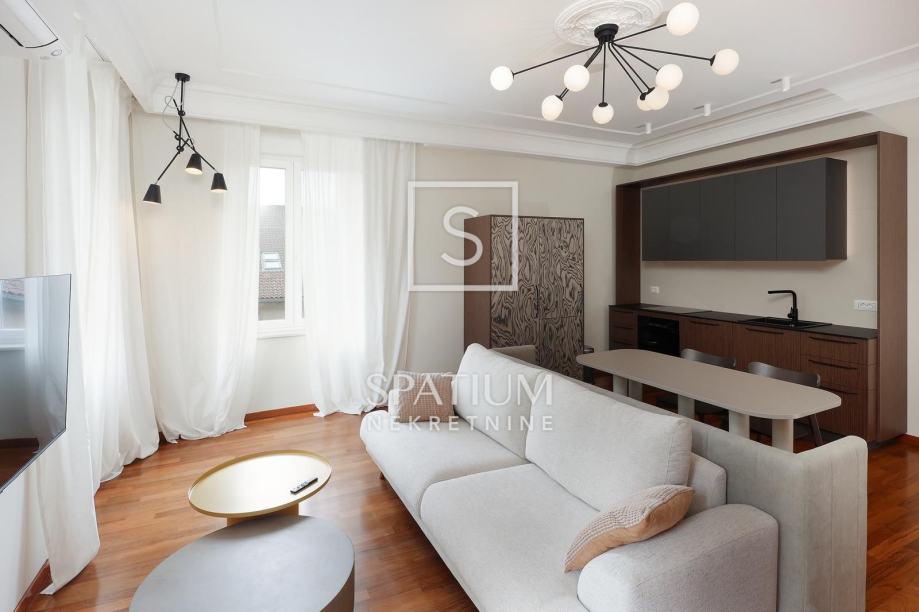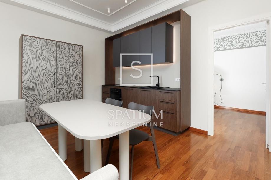 Vrhunski materijali korišteni pri kompletnoj adaptaciji temelj su ovog odlično projektiranog i kvalitetnim namještajem opremljenog interijera.