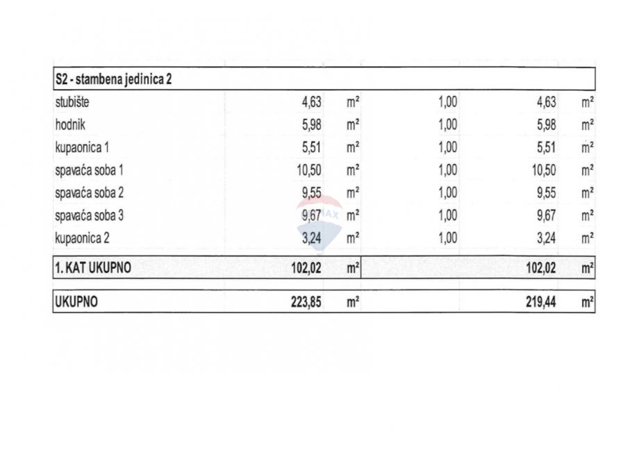 Ukupna površina zemljišta (S1 + S2): 500 m²