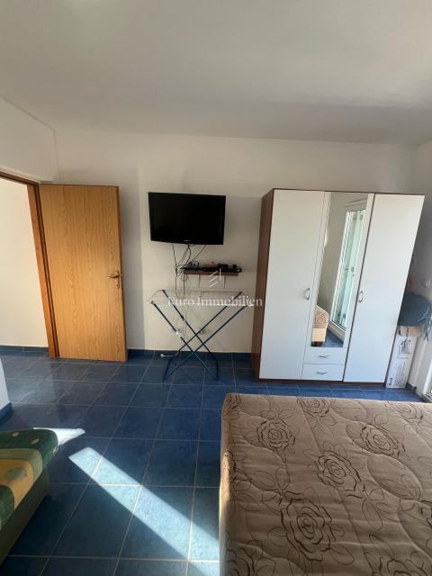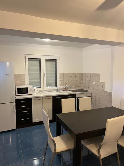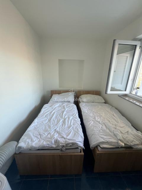 Nekretnina se sastoji od prizemlja i prvoga kata. Prizemlje se sastoji od dvije spavaće sobe, dnevnog boravka, kuhinje, blagovaonice, kupaonice i terase. Prvi kat se sastoji od jedne spavaće sobe, dnevnog boravka, kuhinje, blagovaonice, kupaonice i terase. Treća stambena jedinica sastoji se od jedne spavaće sobe, dnevnog boravka, kuhinje, blagovaonice, kupaonice i terase. Grijanje je osigurano klima uređajem u svakom apartmanu. Uz kuću se nalazi ostava/drvarnica, a iza kuće su roštilj i prostor za druženje. U dvorištu i na prilaznom zemljištu nalazi se četiri parkirna mjesta.
