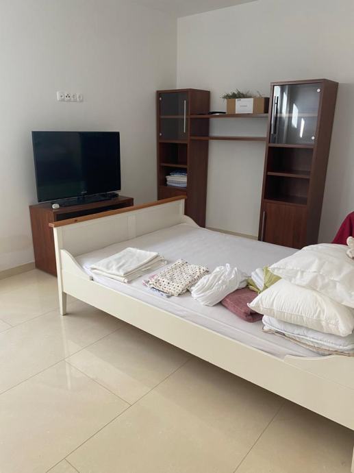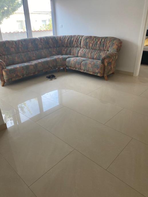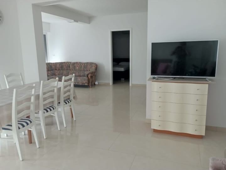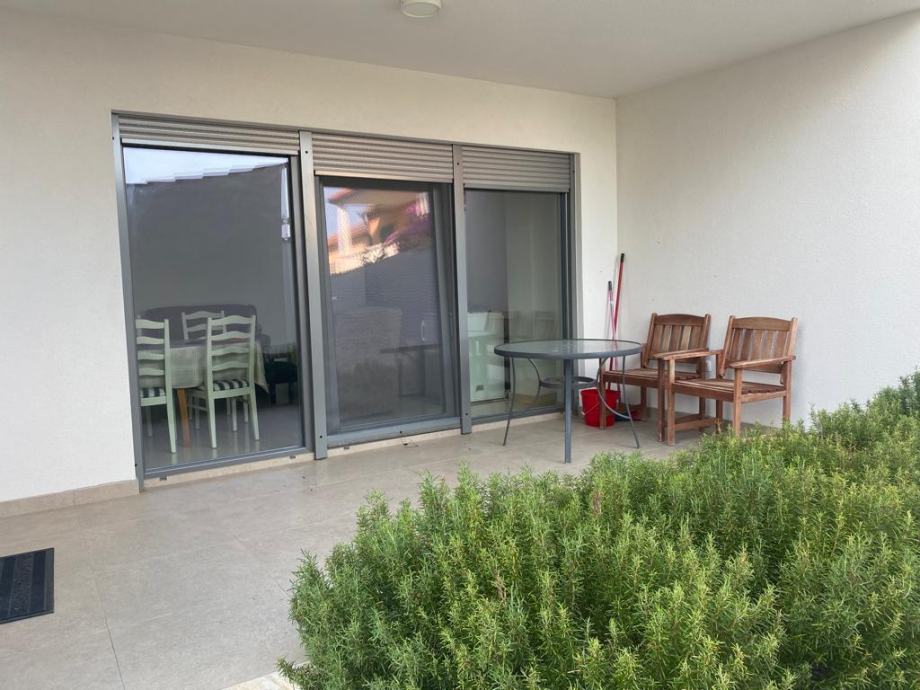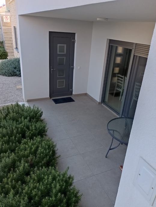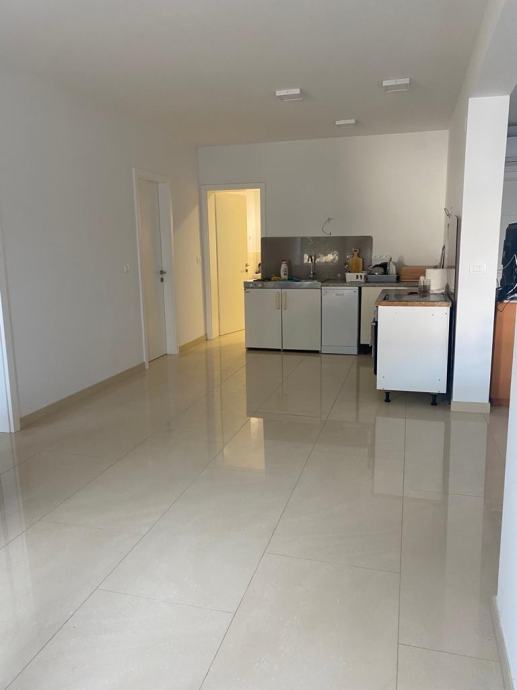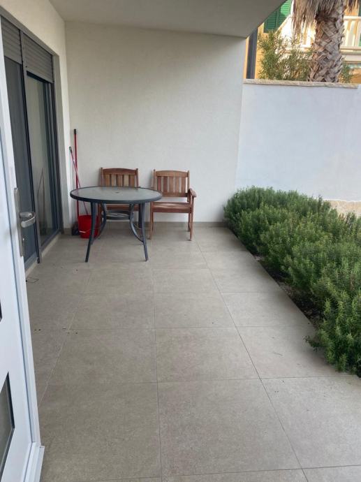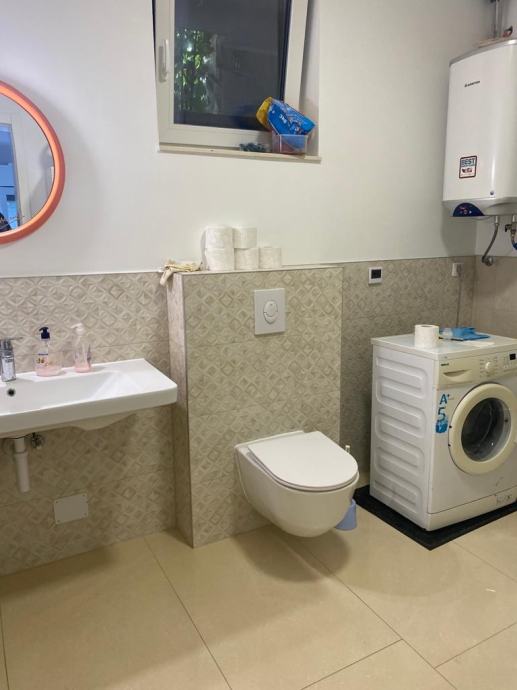 The house was built in 2020, the apartment is on the ground floor and consists of: kitchen, dining room, living room - area 48.30 m2, then two bedrooms of 14.85 and 16.05 m2, bathroom of 7.11 m2, toilet of 3.22 m2, storage room of 12.69, and terrace of 12.04 m2. Total 114.26 m2. The apartment has another storage room of 12 m2 that is not calculated in m2 of the apartment. Ownership in order. The possibility of buying with a bank loan.