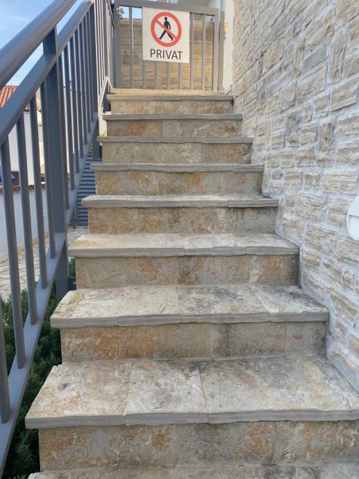 Kuća je građena 2020 godine , stan se nalazi u prizemlju i sastoji se od : kuhinje, blagovaonice, dnevnog boravka - površine 48,30 m2, zatim dvije spavaće sobe od 14,85 i 16,05 m2, kupaonice od 7,11 m2, wc od 3,22 m2, spremišta od 12,69,i terase površine od 12,04 m2. Sveukupno 114,26 m2 .Stan posjeduje još jednu ostavu od 12 m2 koja nije u NKP stana. Vlasništvo uredno. Mogućnost kupnje kreditom banke.