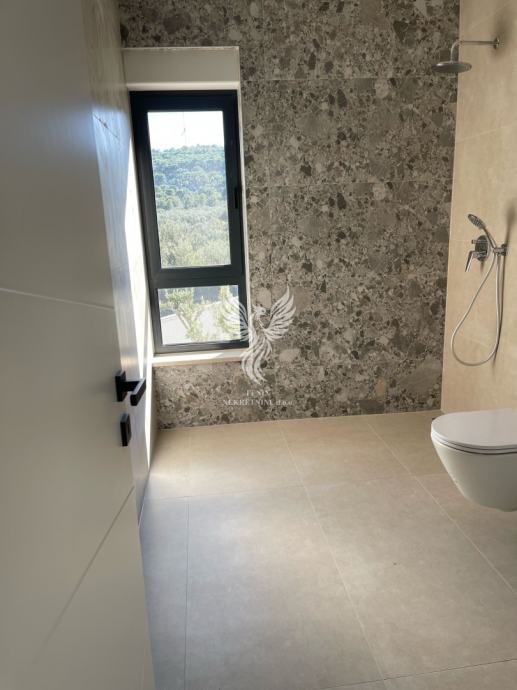Sama kuća je smještena na idealnoj poziciji sa koje se pruža prekrasan pogled na more, a osim morem, kuća je okružena i zelenilom.