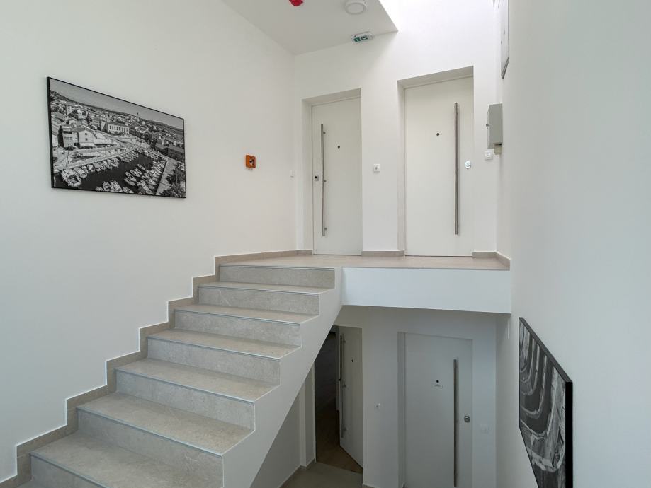 Prodaje se luksuzno opremljen apartman s pogledom na more, udaljen 300 m od centra Betine. Nalazi se u novoizgrađenoj urbanoj vili sa šest apartmana.