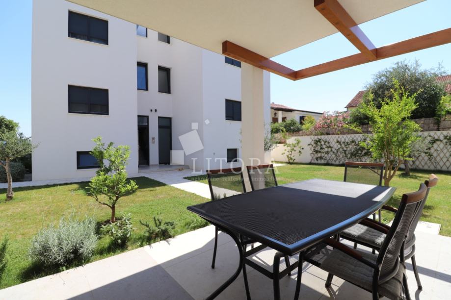 Betina – Prvi red do plaže! Moderan jednosobni apartman u suterenu novogradnje na vrhunskoj lokaciji. Apartman ima ukupnu korisnu površinu od 46 m² i sastoji se od spavaće sobe, kupaonice, kuhinje s blagovaonicom i dnevnim boravkom, privatnog vrta površine 20 m², jednog parkirnog mjesta i spremišta (5,34 m²). Dodatna oprema: