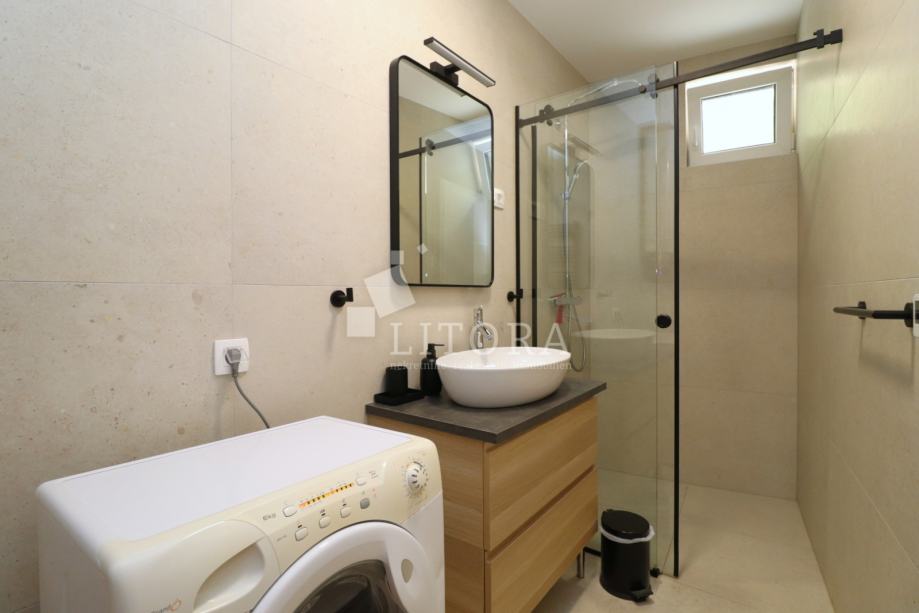 Kvalitetna oprema uključuje: PVC prozore s električnim roletama i mrežicama protiv insekata, Sigurnosna i protupožarna ulazna vrata, Električno podno grijanje u kupaonici, hodniku, kuhinji i dnevnom boravku, Klima uređaj i TV priključke u svakoj prostoriji, Moderne kupaonske armature i sanitarije, Apartman je potpuno namješten, a sav namještaj je uključen u cijenu. U potpunosti je dovršen i useljiv – idealan kao kuća za odmor, za cjelogodišnje stanovanje ili za turistički najam.