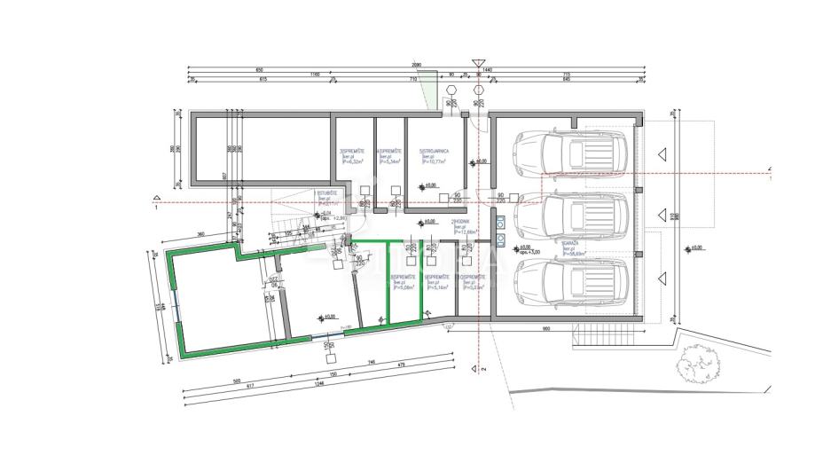 Stanari imaju na raspolaganju prostrano zajedničko dvorište od cca 200 m² – s natkrivenom terasom, roštiljem/vanjskom kuhinjom i vanjskim tušem.