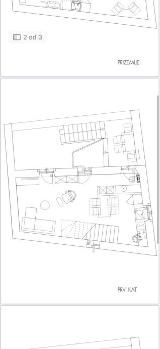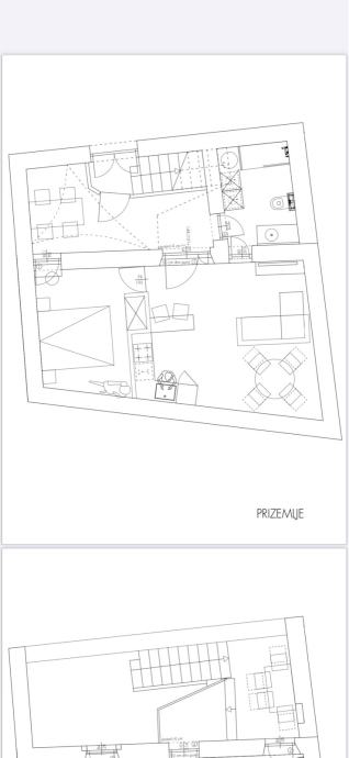 Kuca je podijeljena u prizemlje, prvi i drugi kat.