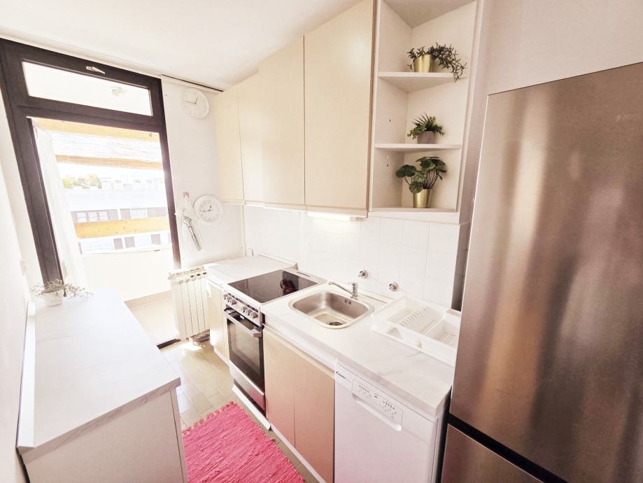 Opremljen je sa svim aparatima: štednjak, frižider, perilica rublja, suđerica, klima uređaj, novi smart TV...