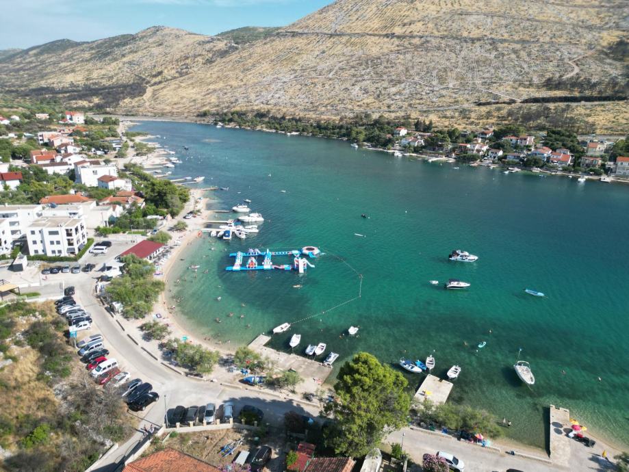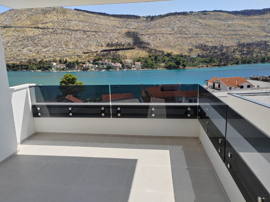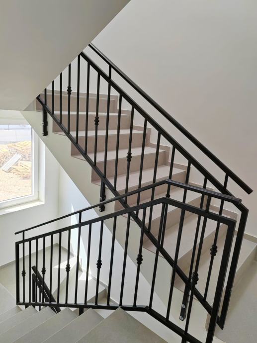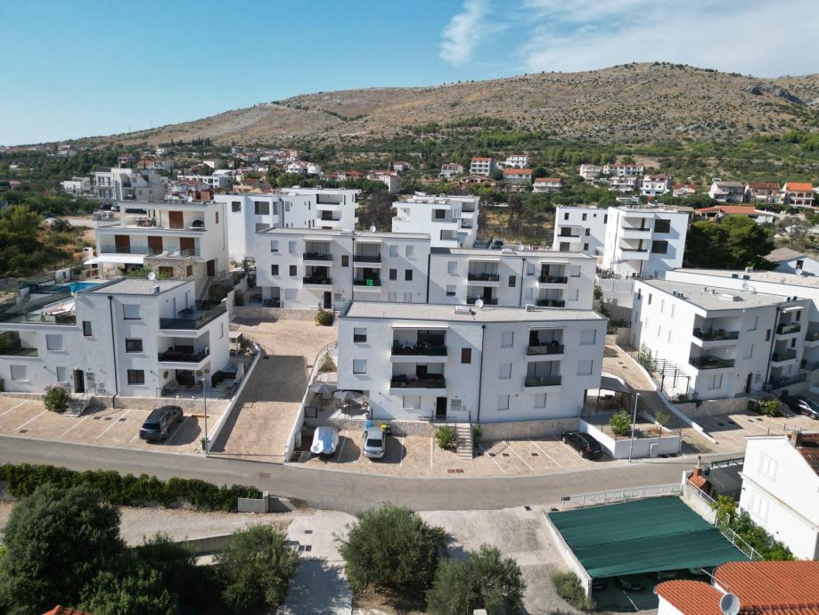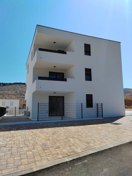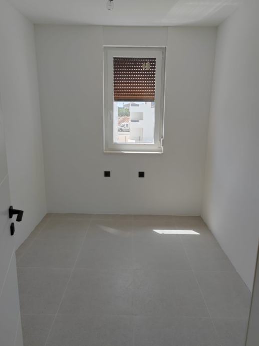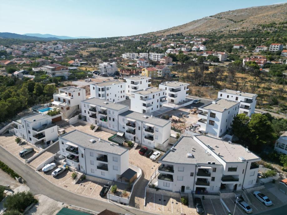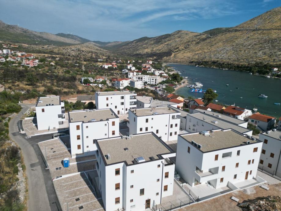 Prodaje se četverosoban penthouse na drugom katu stambene zgrade udaljene 80m od mora. Stan se sastoji od tri spavaće sobe, dnevnog boravka, kuhinje i blagovaonice, dvije kupaonice, lođe i terase. Stanu pripadaju dva parkinga. Stan ima podno grijanje i useljiv je u srpnju 2024. Pri potpisu predgovora potrebno je uplatiti 20% od ukupne cijene stana. Stan je moguće kupiti putem kredita. Kupac ne plaća porez na promet nekretnina. Stan se nalazi u naselju sa šest zgrada i trideset stanova različitih kvadratura, trosobnih, četverosobnih i peterosobnih.