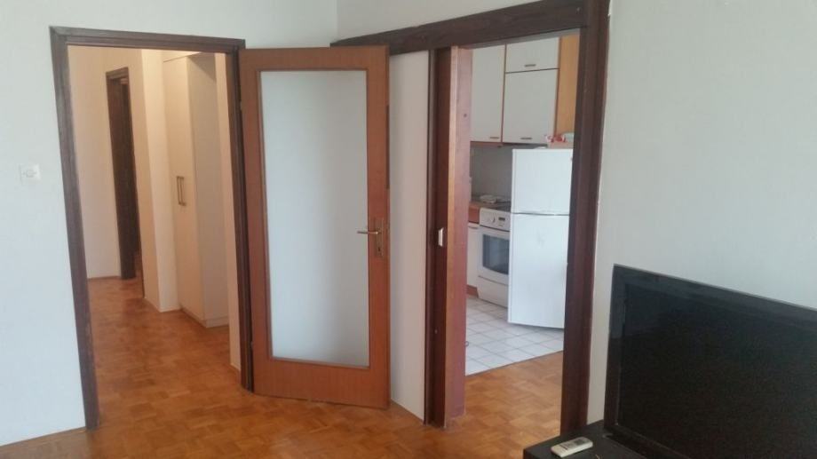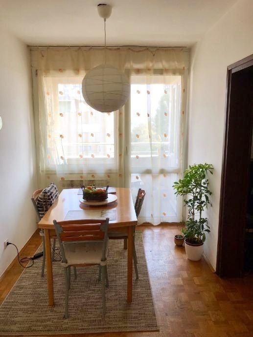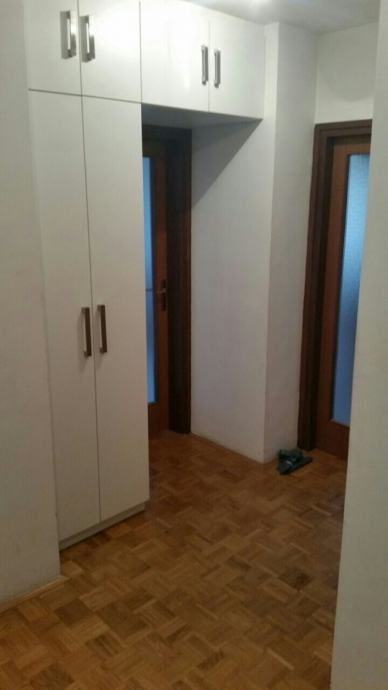Iznajmljuje se na duže vrijeme dvosoban stan površine 56m2 na petom katu (od ukupno šest) zgrade s liftom u Trnju, Vukovarska ulica.