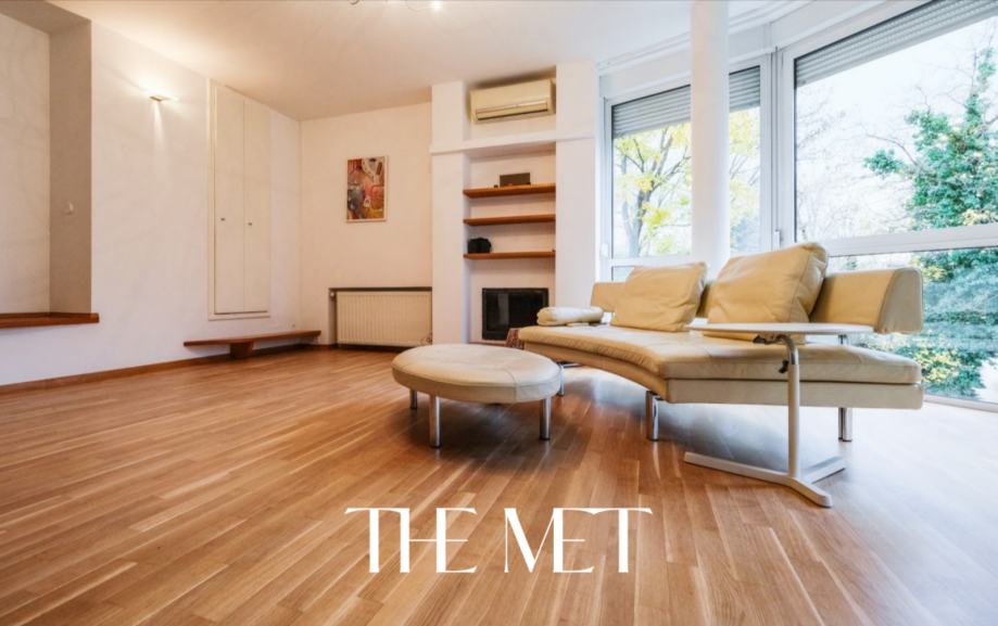 Opremljen je protuprovalnim vratima, video portafonom, kaminom i perilicom posuđa.