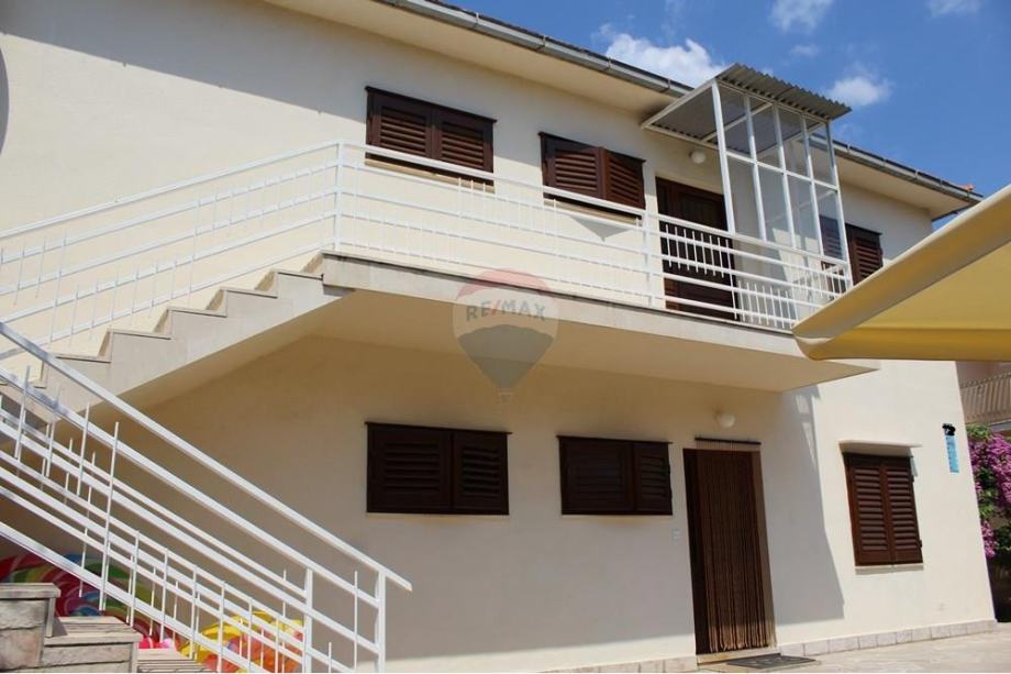 Kuća je smještena u mirnoj ulici, ali u blizini svih potrebnih sadržaja, uključujući plažu, trgovine i restorane. Blizina centra i prometne povezanosti čini ovu lokaciju izuzetno poželjnom.