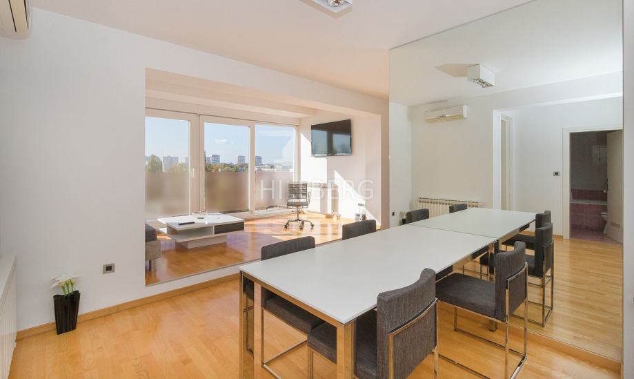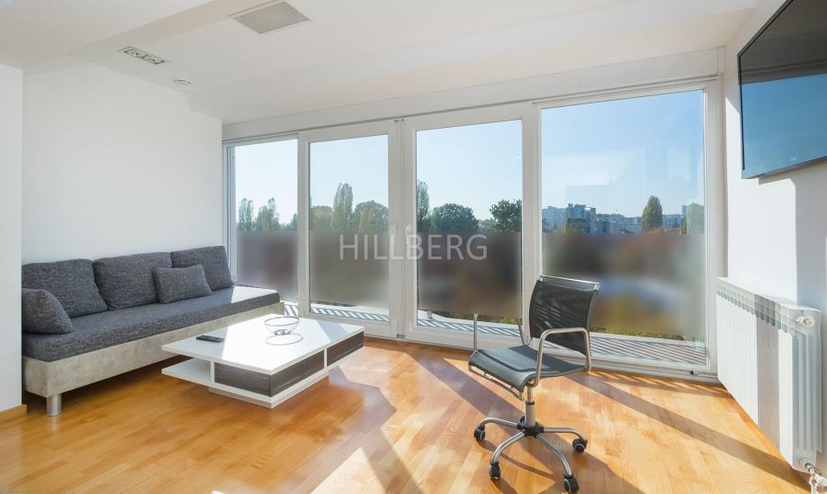 Atraktivan trosoban stan (penthouse) površine 72 m2, smješten na 6. katu novije zgrade (2003.) s liftom na Cvjetnom naselju (Velsačka ulica).