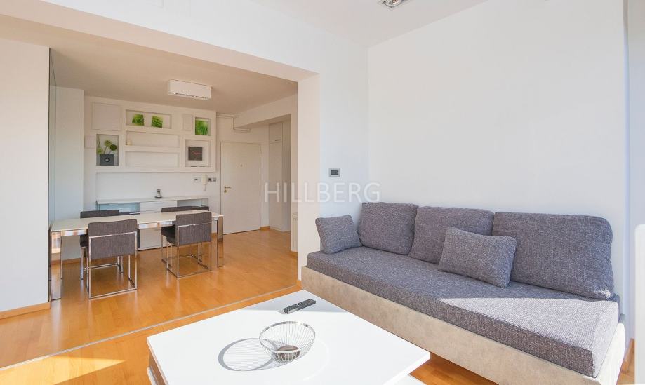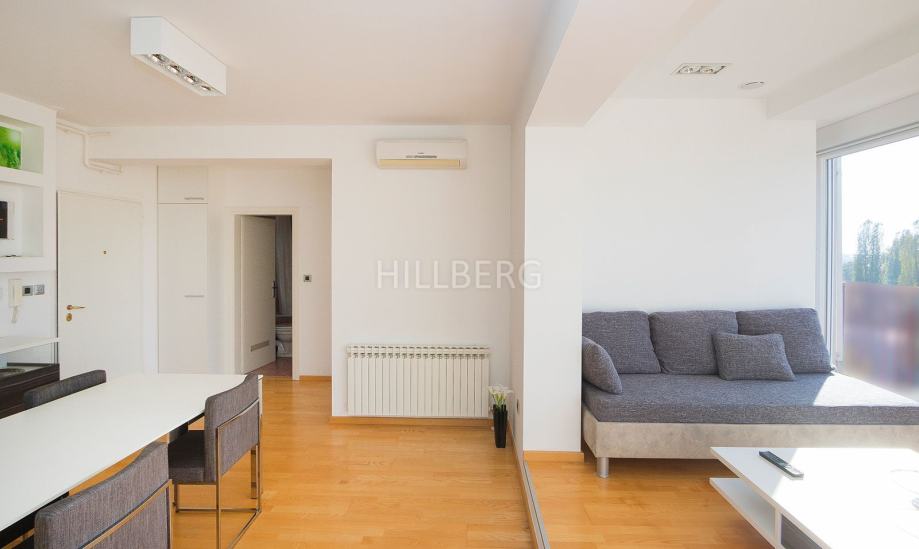 Sastoji se od blagovaonice, dnevnog boravka s izlazom na balkon od 9x1 m, kuhinje, 2 spavaće sobe, kupaonice s kadom.