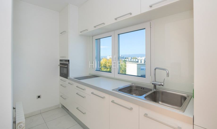 Prekrasan otvoreni pogled na zapad (boravak, spavaća) i sjever (kuhinja i manja spavaća/radna soba).