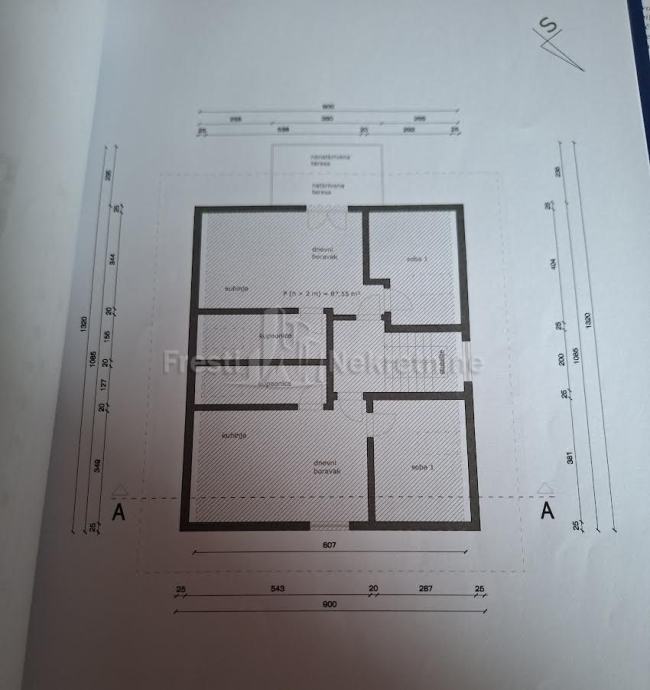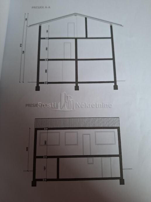 Visina kuće- 8,7 m; širina 9x18,5 m. Uz nekretninu je i garaža visine 2,6 m te širine 5,5x7 m.