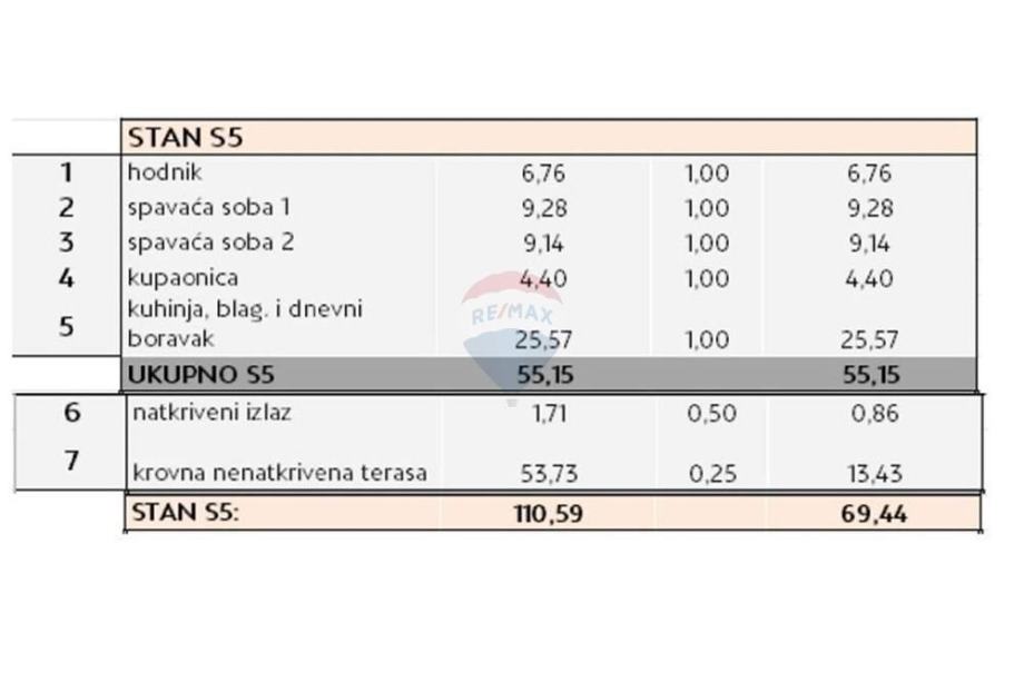 NETO POVRŠINA STANA IZNOSI 69,44 m2.