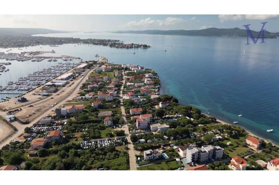 Zemljište pravokutnog oblika se nalazi u atraktivnom dijelu Bibinja, nedaleko D-marine, najveće turističke luke u Dalmaciji.