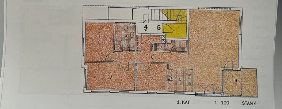 Prodaje se četverosoban stan na 1. katu od 2 kata zgrade izgrađene 2004. godine.
