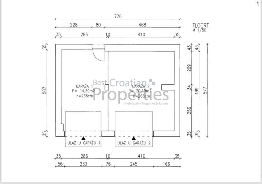 Uz stan idu i dvije garaže uključene u cijenu kvadrature od ukupno 34.60m2 (20.19m2 i 14.39m2).