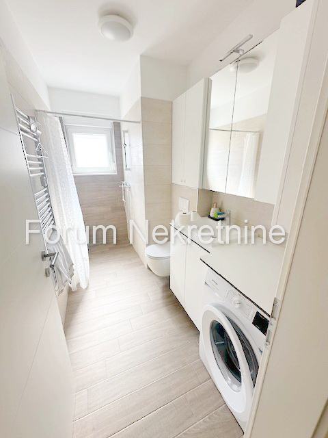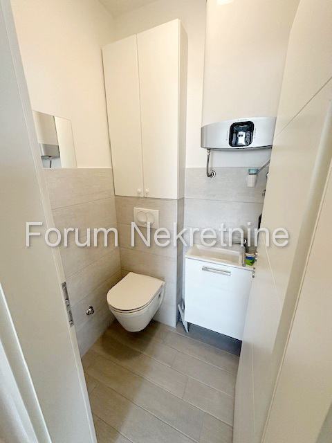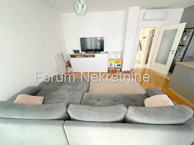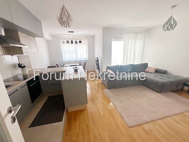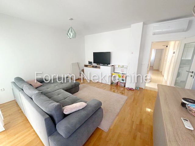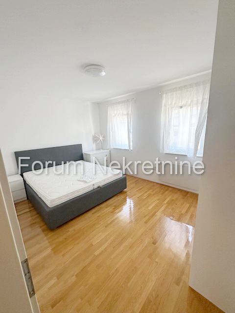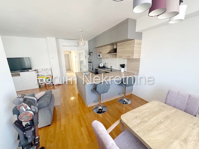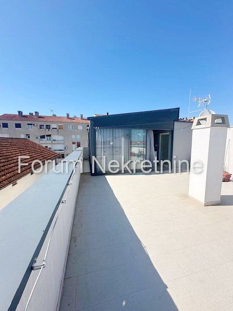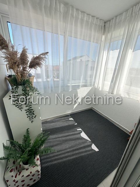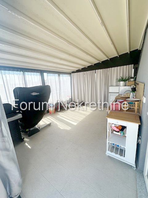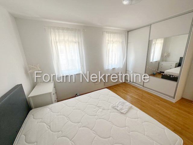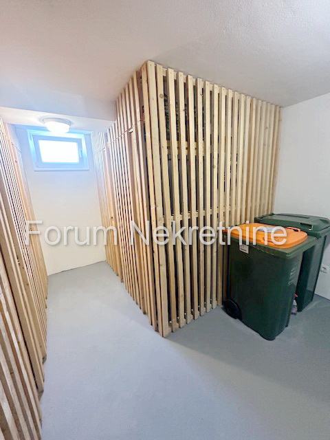 Stan ima dvije spavaće + dnevnu sobu sa kuhinjom i blagovaonicom ,kupatilo sa wc'om te jos jedan wc i lođu. Na drugoj etaži stanu pripada u vlasništvo i polovica krovne terase u veličini 80m2 gdje se nalazi zatvoreni ostakljeni natkriveni (sa pomičnim krovom) prostor od cca 20m2 sa malom kuhinjom i roštiljem pogodno za, odmaranje ili zabavu. Nekretnini pripada i spremište u podrumu od cca 3 kvadrata i dva vanjska parkirna mjesta. Stan se prodaje namješten i po isplati odmah dostupan .