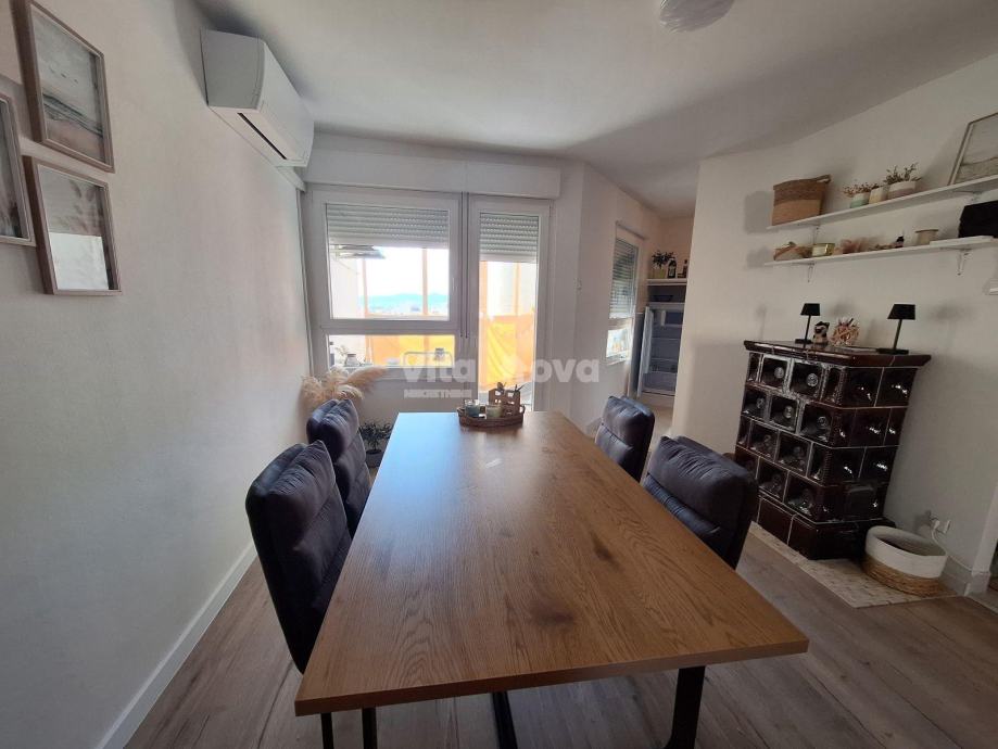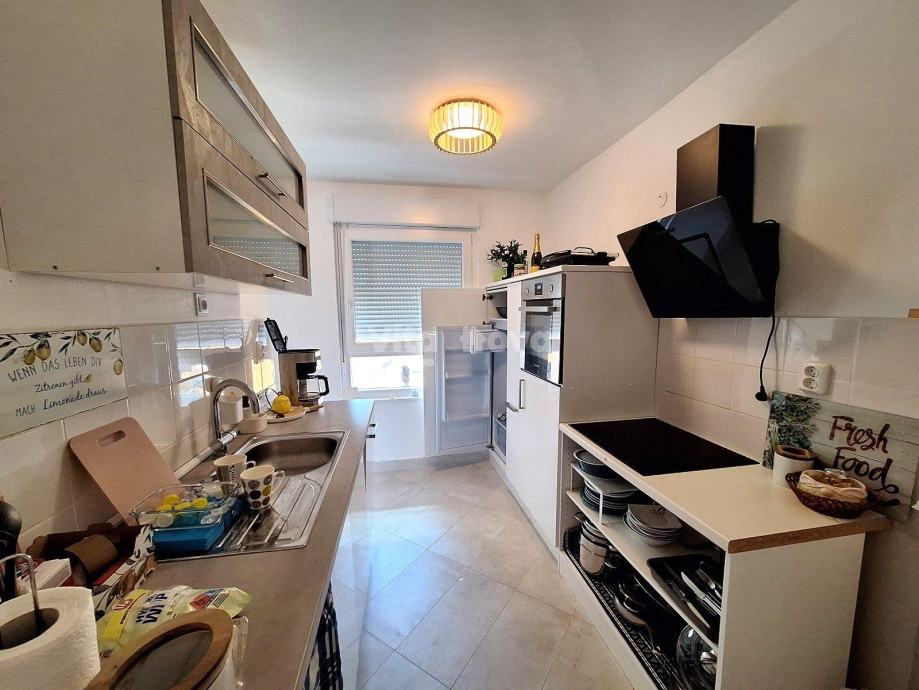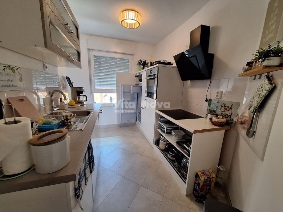 Bili brig - Iznajmljuje se prostran i moderno uređen trosoban stan na 3. katu stambene zgrade s novom fasadom i kvalitetnom toplinskom izolacijom. Stan se sastoji od dnevnog boravka, kuhinje, blagovaonice, balkona s kojeg se pruža pogled na more, lođe, 3 spavaće sobe, kupaonice, wc-a, spremišta, te drvarnice u prizemlju.