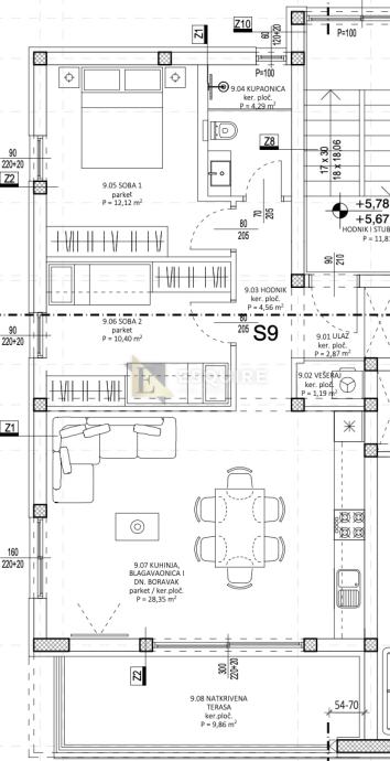 S9 - dvosoban penthouse na 2. katu - 95,39m2 - 333.865,00€