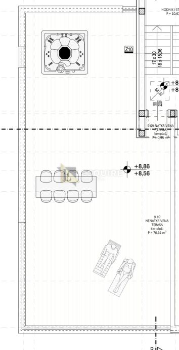 Iznad stana smještena je prostrana krovna terasa površine 56,66 m², idealna za uređenje različitih sadržaja za boravak na otvorenom, u skladu s preferencijama budućih vlasnika.