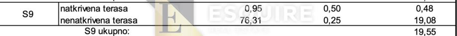 Ukupna obračunska korisna površina stana s pripadcima iznosi 95,39 m², dok je bruto površina cijele jedinice 176,76 m².