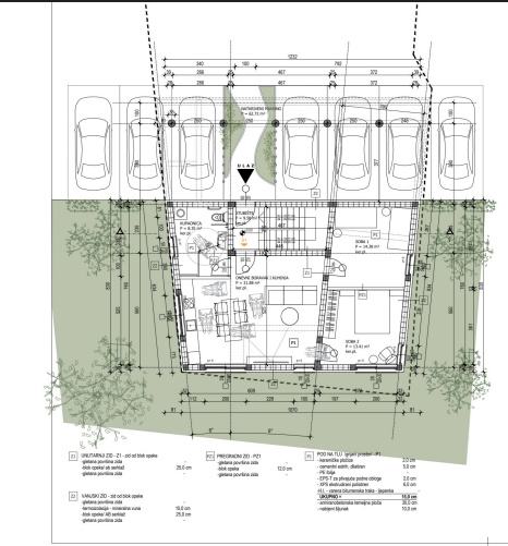 Bili Brig, novogradnja, u izgradnji je zgrada sa pet stambenih jedinica. Smještena u novom urbanom naselju u mirnom kvartu sa više novih manjih zgrada. Sastoji se od prizemlje, dva kata s izlazom na krovne terase. Krov je podijeljen na dvije krovne terase, te svakom stanu koji se nalazi na drugom katu pripada jedna odvojena krovna terasa. Za grijanje i hlađenje stanova postavljeni su klimatizacijski uređaji u dnevnom boravku i spavaćim sobama, podno grijanje je instalirano u kupaonici, no postoji opcija postavljanja i u cijelom stanu. U izgradnji i opremanju zgrade, koriste se suvremeni kvalitetni građevinski materijali i oprema. Izvođenje građevinskih radova je u tijeku, a predviđeni završetak radova i useljenje u stanove je do ljeta 2026. godine. PRIZEMLJE S1 , dvosoban stan s pripadajućim vrtom, pogodan za invalide; ulaz u zgradu je ravan u razini zemlje bez stubišta, otvori za ulaz u prostorije su širi kao i kupaonica, sve prilagođeno za osobe u kolicima. Stan se nalazi u prizemlju zgrade a sastoji se od: - open space dnevnog boravka s kuhinjom i blagovaonicom (31,89 m2), - spavaće sobe (14,38 m2), - spavaće sobe (13,41 m2), - kupaonice (8,35 m2), Unutarnji stambeni prostor zauzima površinu od 68,03 m2, plus dva parkirna mjesta; jedno natkriveno, drugo nenatkriveno , ukupno s parkingom 77,66 m2, te vrt, ukupno 92,66 m2 KARAKTERISTIKE I OPREMA NEKRETNINE: = Konstrukcija zgrade / zidana - blok opeka = Termofasada / Stiropor 10 cm = Podne obloge - Parket u cijelom stanu osim kupaonice = Prvoklasna PVC stolarija / unutarnja boja bijela, vanjska boja bež = Ugrađeni komarnici = ALU rolete na elektropogon na svim prozorima i balkonskim stijenama = Ulazna vrata / protuprovalna - protupožarna = Klimatizacijski uređaj u dnevnom boravku i spavaćoj sobi = Podno grijanje u kupaonicama / Postoji opcija za postavljanje u cijelom stanu