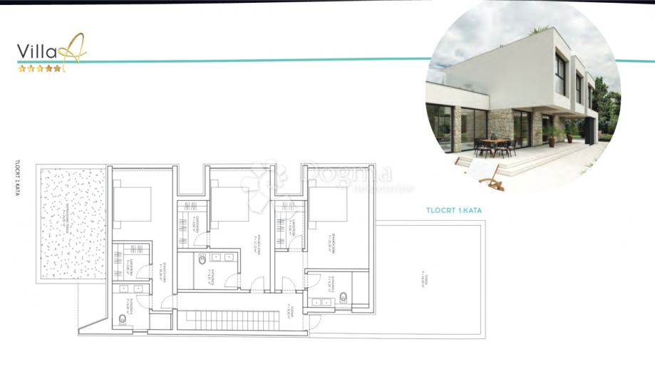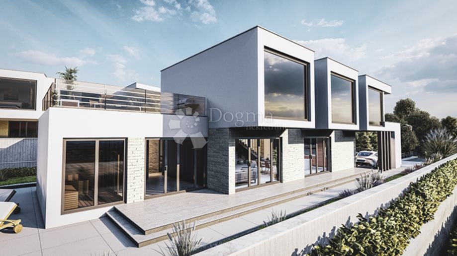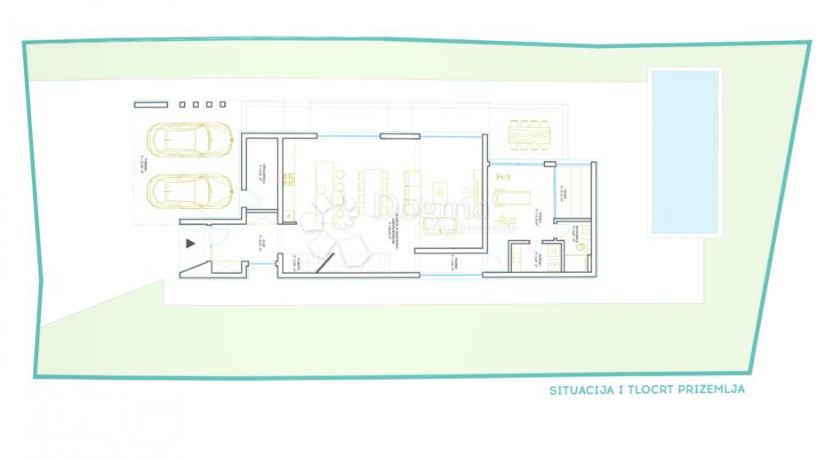 U prizemlju natkriveni parking, open space prostor (dnevni boravak, kuhinja blagovaonica).