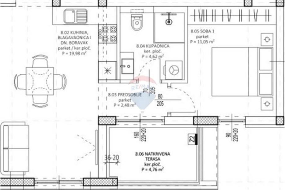 - kuhinje s blagovaonicom i dnevnim boravkom - 19,98m2