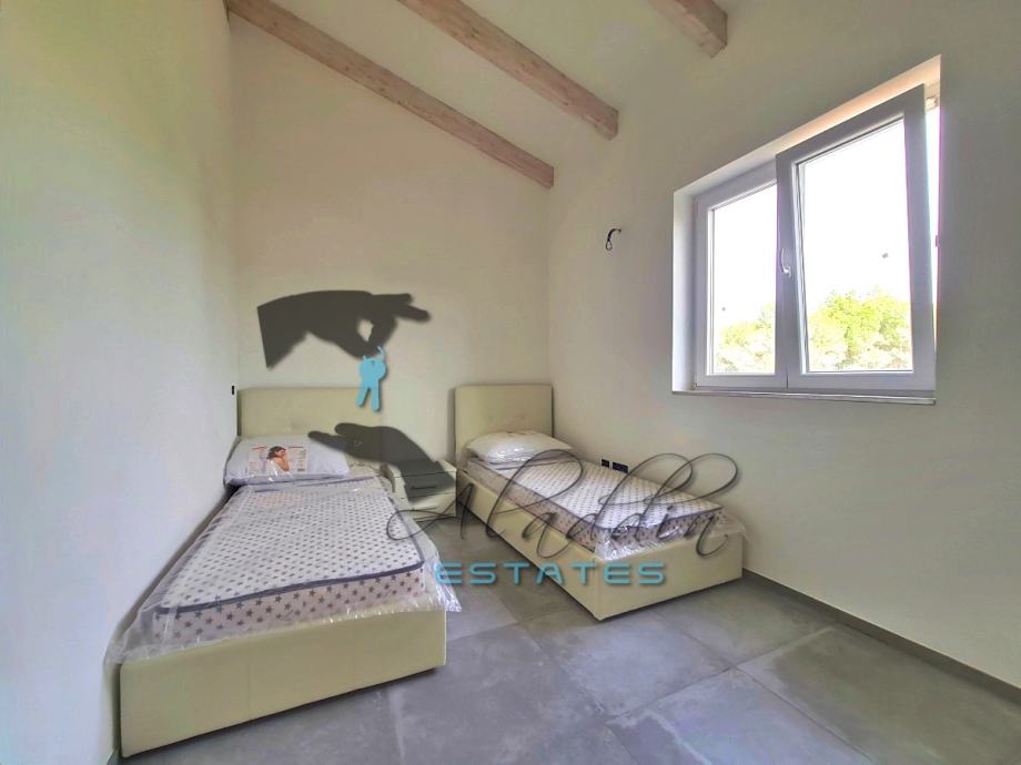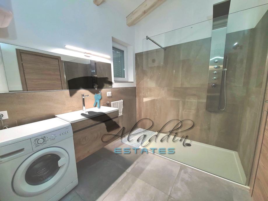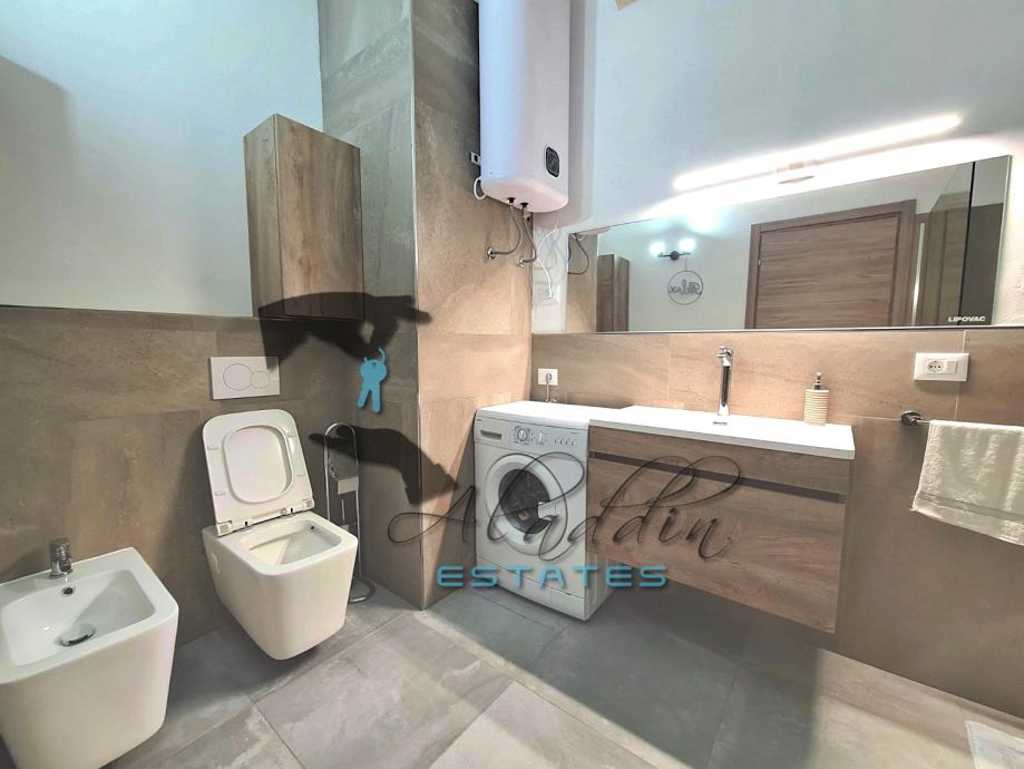 Apartment is fully furnished and equipped, with built-in modern kitchen, tables and chairs, couches, stylish bathroom, with all bedroom furniture and air conditioning unit. It also has a built-in chimney for setting up a wood or pellet stove, built-in installations for satellite and terrestrial TV, excellent network of water and electricity installations that enables extremely simple and quick upgrading and connection of new consumers inside and outside the apartment. It features very high construction quality, including first-class hydro, thermal and acoustic insulation (facade insulation 10 cm, roof insulation 20 cm, foundation 15+ cm). Many details have been thought of and taken into account, such as for example, white aluminium shutters that are installed on all windows, which consist of two panes where each one can be adjusted independently of the other for maximum efficiency and comfort.