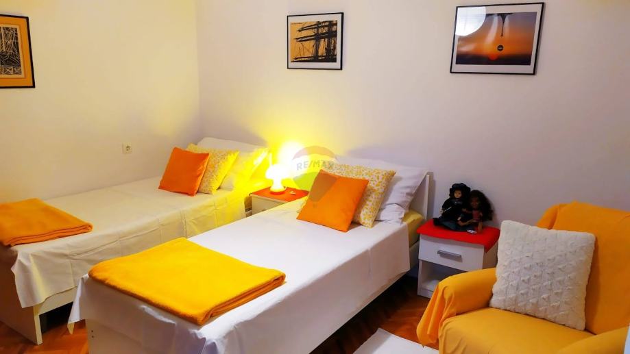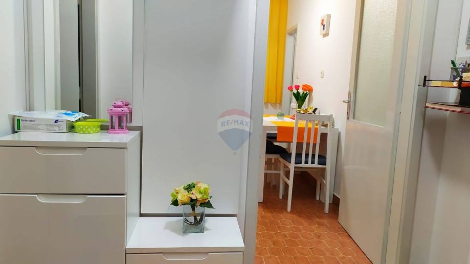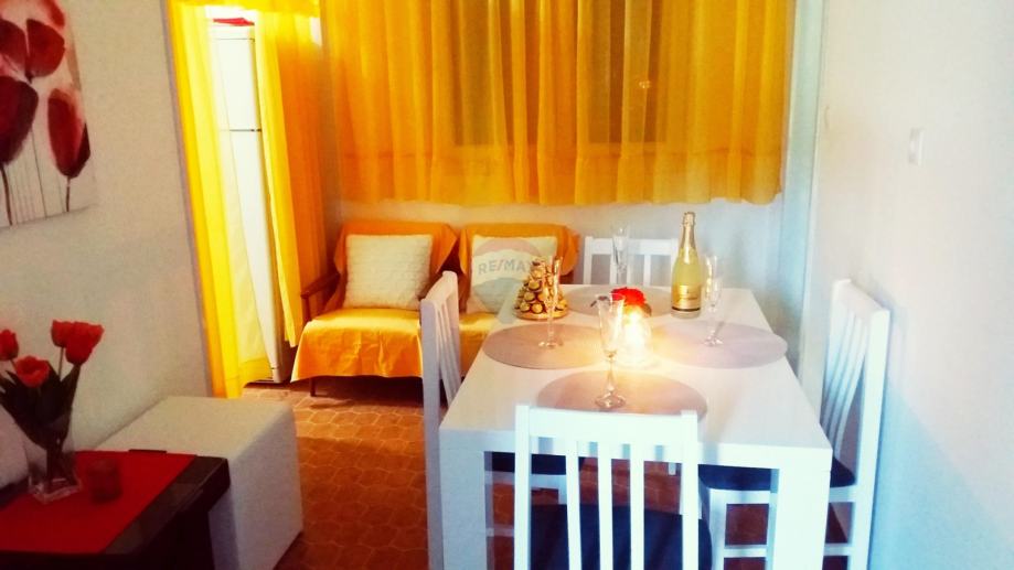 Stan se sastoji od kuhinjue dnevnog boravaka, blagovaonice otvorenog tlocrta, 2 spavaće sobe, kupaonice i balkona.