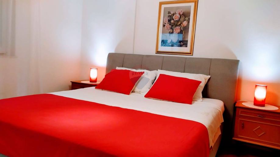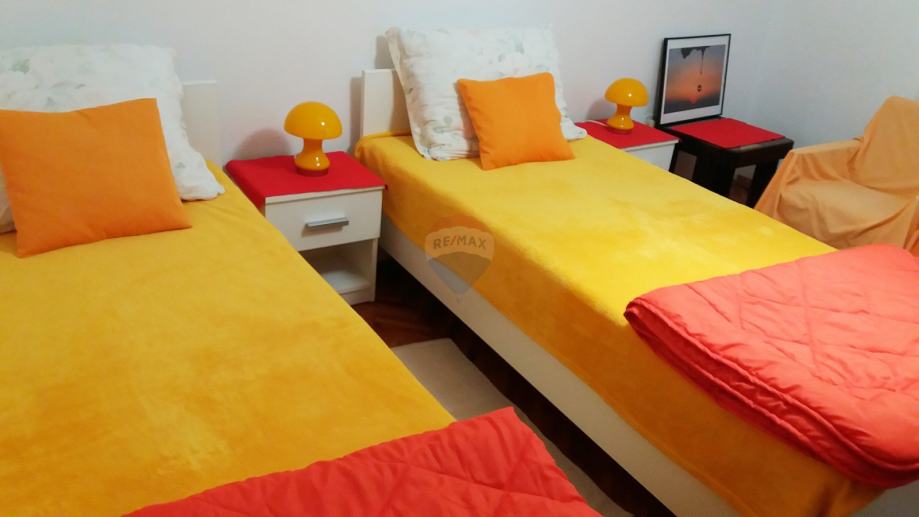 PRIZEMLJE: stan površine 64 m2, sastoji se od potpuno opremljene kuhinje sa blagovaonom, dvije spavaće sobe i kupaonice.
