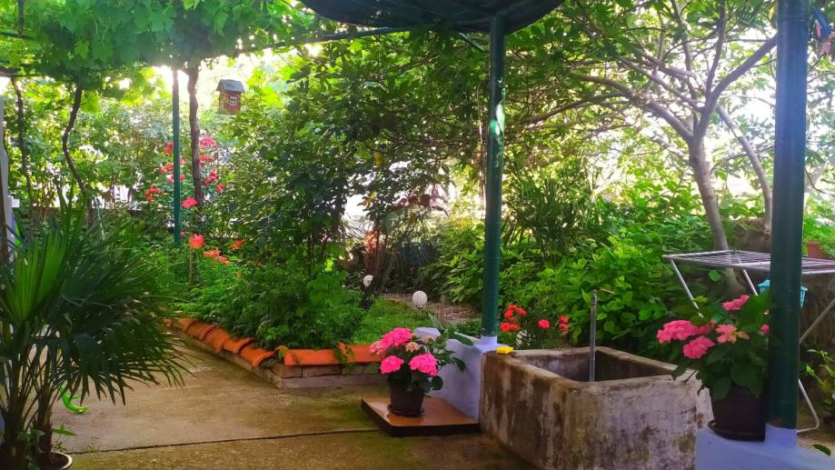 Okućnica je ograđena i uređena, te puna biljaka i zelenila.