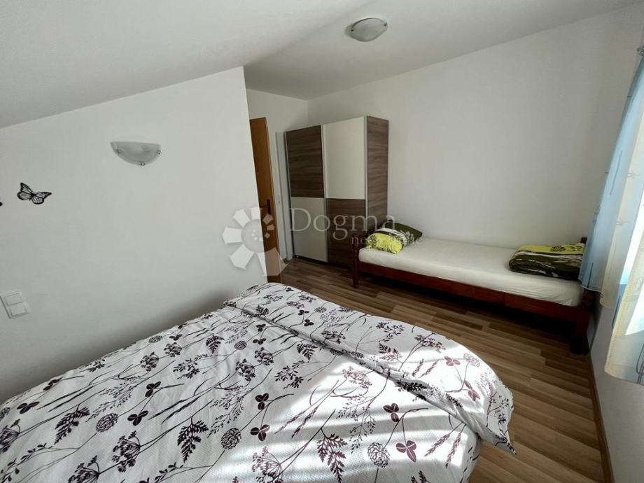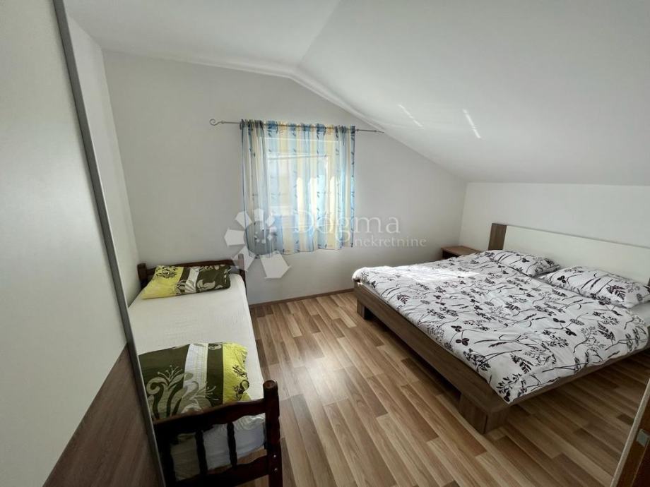 U prizemlju se nalaze 2 stana sa odvojenim ulazom. Vanjskim stepeništem se izlazi na kat gdje su smještena dva apartmana, a u potkrovlju se nalaze još dva apartmana. Apartmani su u potpunosti namješteni te svaki apartman ima zaseban balkon.