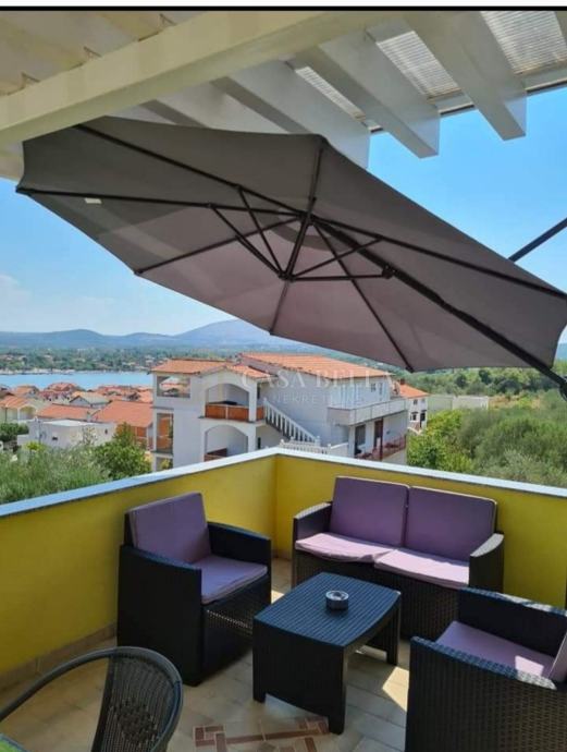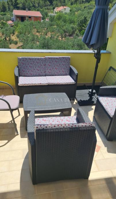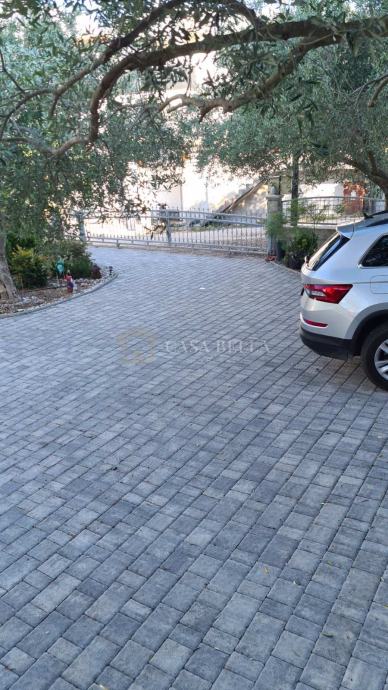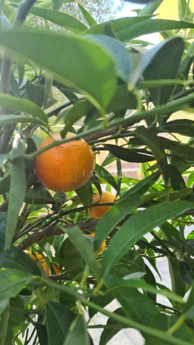 Kuća ima tri etaže od kojih svaka etaža ima svoju terasu i pogled na more. Dio okućnice je popločano dvorište, dok drugi dio čini vrt sa zasađenim mediteranskim agrumima i biljkama.