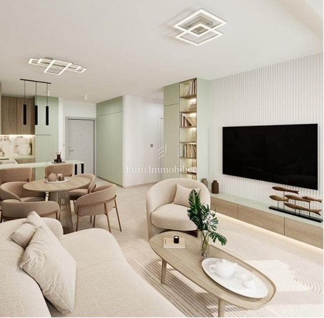 Sastoji se od: hodnika, kupaonice, dvije spavaće sobe, kuhinje, dnevnog boravka i blagovaonice, lođe.
